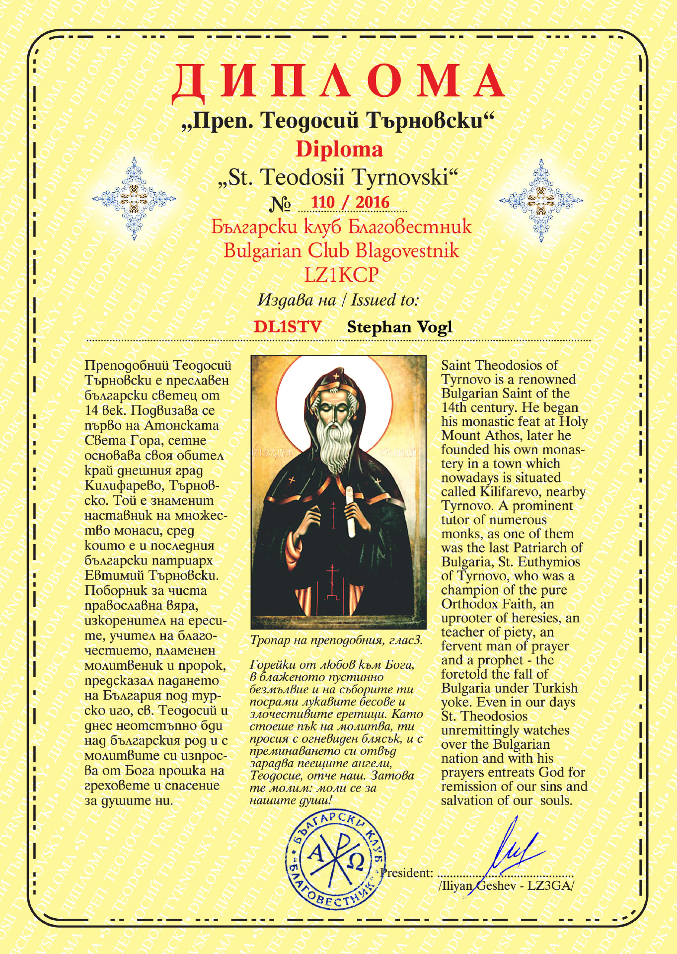 THE ST.TEODOSII TYRNOVSKI DIPLOMA 2016 |
