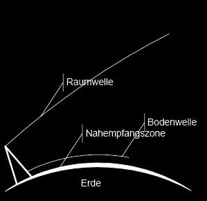 Die Bodenwelle wird hier stärker gedämpft als bei Mittelwellen. Somit hat die Bodenwelle hier nur geringe Bedeutung.