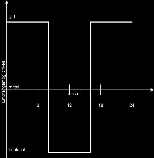 Emfpangsmöglichkeiten von Mittelwellen variieren mit der Tageszeit und Jahreszeit.
