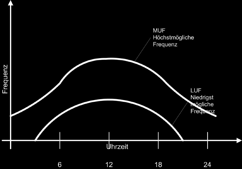 Frequenzen darüber werden gebrochen oder ungebrochen ins Weltall abgestrahlt.