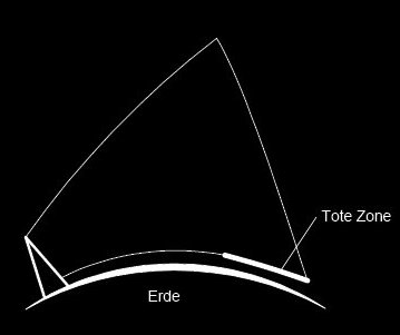 Den Bereich, der weder mit der Bodenwelle noch der Raumwelle erreicht wird bezeichnet man als tote Zone.