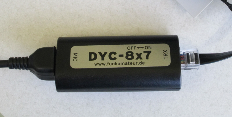 Zur Unterstützung beim SSB-Betrieb verwende ich einen in die Mikrofonleitung eingeschleiften externen Dynamikkompressor DYC-8x7 (Bausatz aus Funkamateur)